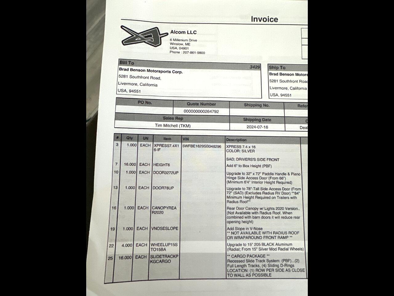 2024 Alcom 7.5 x 16 7.5X16 ALCOM ALUMINUM CARGO PACKAGE E TRAC