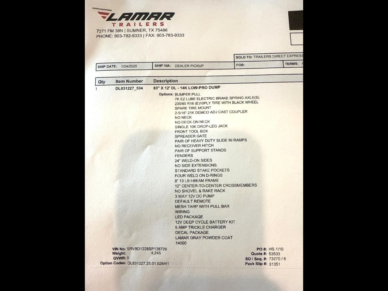 Message: Thought you might be interested in this 2025 Lamar 12 Foot Dump.